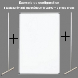 Configuration avec 1 Tableau Emaillé Magnétique position Portrait 150x100 + 2 pieds droits. Les pieds se fixant dans les platines à l'arrière du tableau. Configuration avec 1 Tableau Emaillé Magnétique position...
