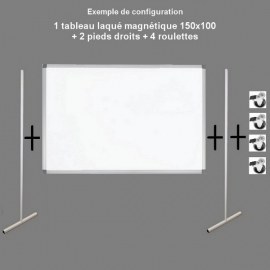 Configuration avec 1 Tableau Laqué Magnétique position Portrait ou Paysage 150x100 + 2 pieds droits + 4 roulettes pour une mobilité parfaite. Les pieds se fixant dans les platines à l'arrière du tableau. Configuration avec 1 Tableau Laqué Magnétique position...
