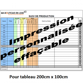 Aprés l'envoi de votre fichier, réalisation d'un BAT (Bon A Tirer) + Impression (200 cm x 100 cm) sur vinyle polymère + plastification effaçable à sec transparente (Tableau à commander séparément - Réf : TABL-200-SP) Aprés l'envoi de votre fichier, réalisation d'un BAT (Bon A...