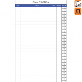 Visuel " Plan d'action" XXL avec PDCA composé d'une feuille magnétique souple avec impression du plan d'action avec PDCA et le tout effaçable à sec. Dimension de ce Visuel Plan d'actionavec PDCA : 955mm x 600mm Visuel " Plan d'action" XXL avec PDCA composé d'une feuille...