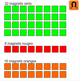 Lot de 56 magnets pour Croix Sécurité composée de 56 cases : 36 Verts + 16 Oranges + 8 Rouges Dimension des Magnets: - 30x30mm pour Croix Sécurité format A2 - 20x20mm pour Croix Sécurité format A3 - 15x15mm pour Croix Sécurité format A4 - 10x10mm pour Croix Sécurité(format A5) + Pyramide(format A5) Lot de 56 magnets pour Croix Sécurité composée de 56 cases :...