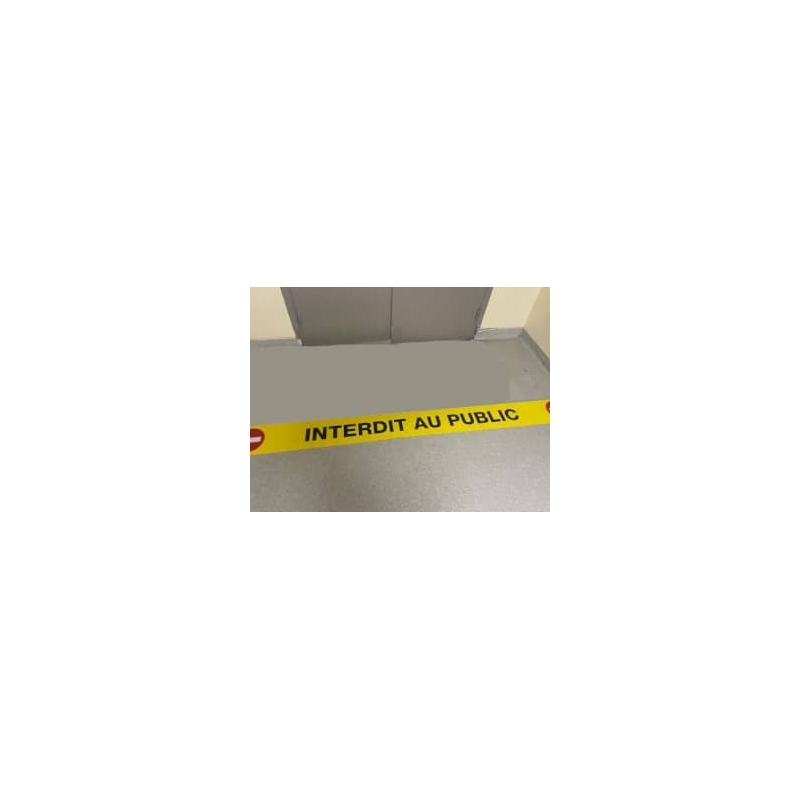 Bande adhésive "INTERDIT AU PUBLIC" - Format 136x20cm - Impression quadri sur vinyle polymère et plastification grainée