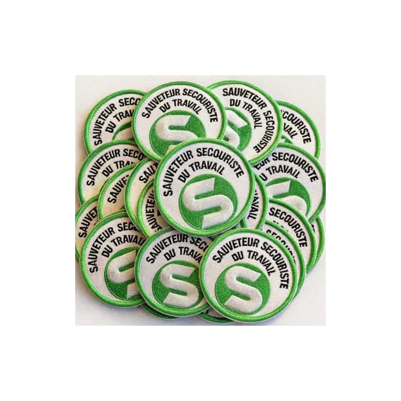 Ecusson Vert SST (Sauveteur Secouriste du Travail) rond 65mm revêtement à thermocoller sur vos vêtements de travail
