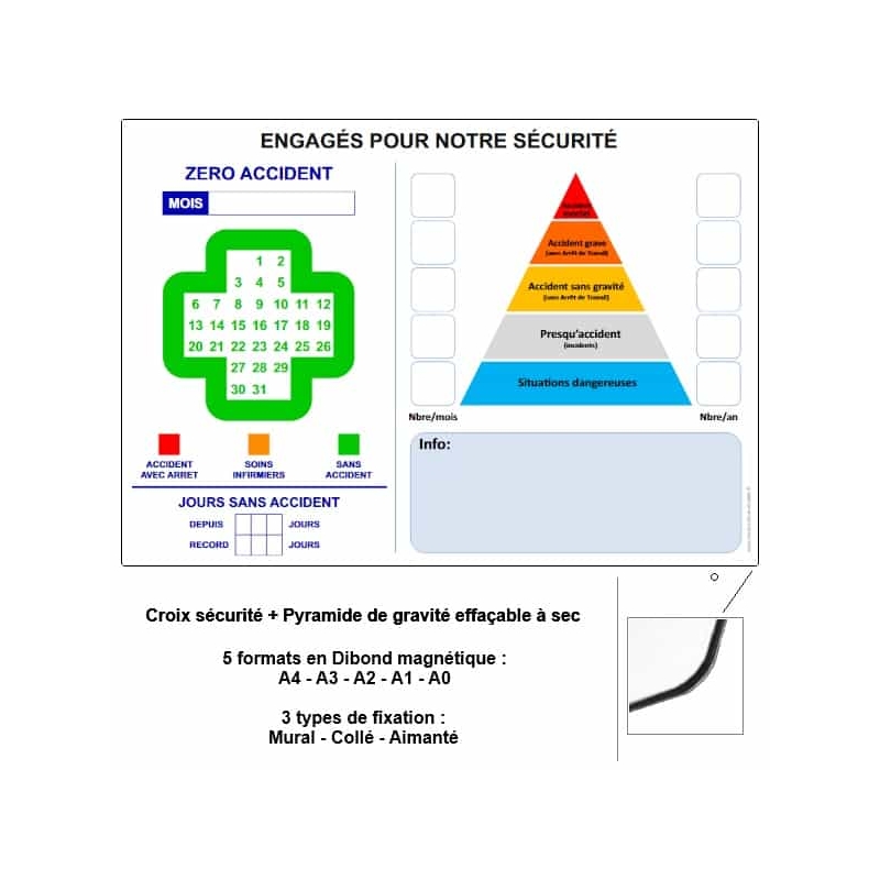 La sécurité au travail reste un enjeu central pour les entreprises industrielles, logistiques, de maintenance ou de services. Sur le terrain, les équipes doivent comprendre rapidement la situation sécurité : incidents, accidents, gravité des événements, évolution dans le temps. La croix sécurité et la pyramide de gravité imprimée sur panneau Dibond magnétique et effaçable constituent un outil de management visuel simple, clair et facilement partageable. Cet article s’adresse aux responsables Sécurité, responsables QHSE, managers de proximité, animateurs Lean et dirigeants qui souhaitent renforcer la prévention et structurer leurs rituels sécurité. Vous y trouverez un guide concret pour comprendre, déployer et utiliser cet affichage au quotidien.