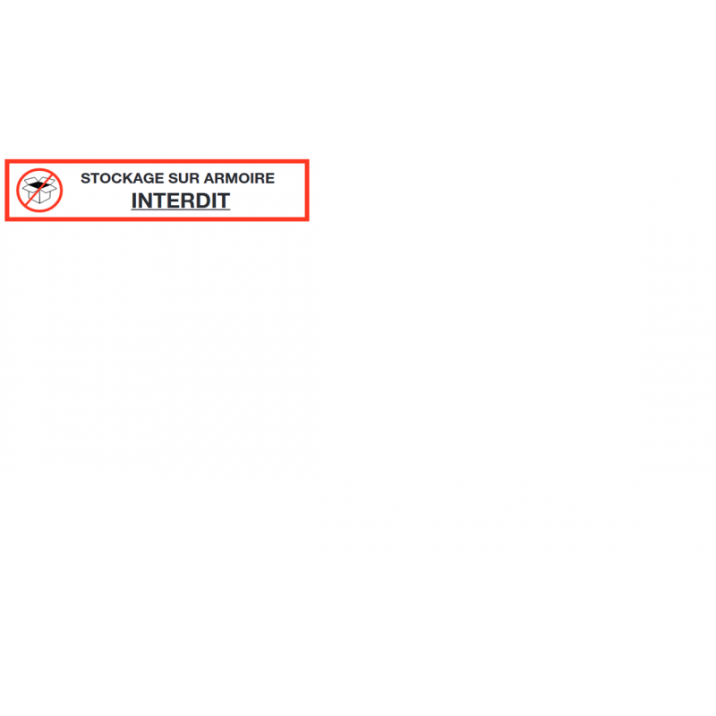 Etiquette STOCKAGE SUR ARMOIRE INTERDIT en 12x2cm